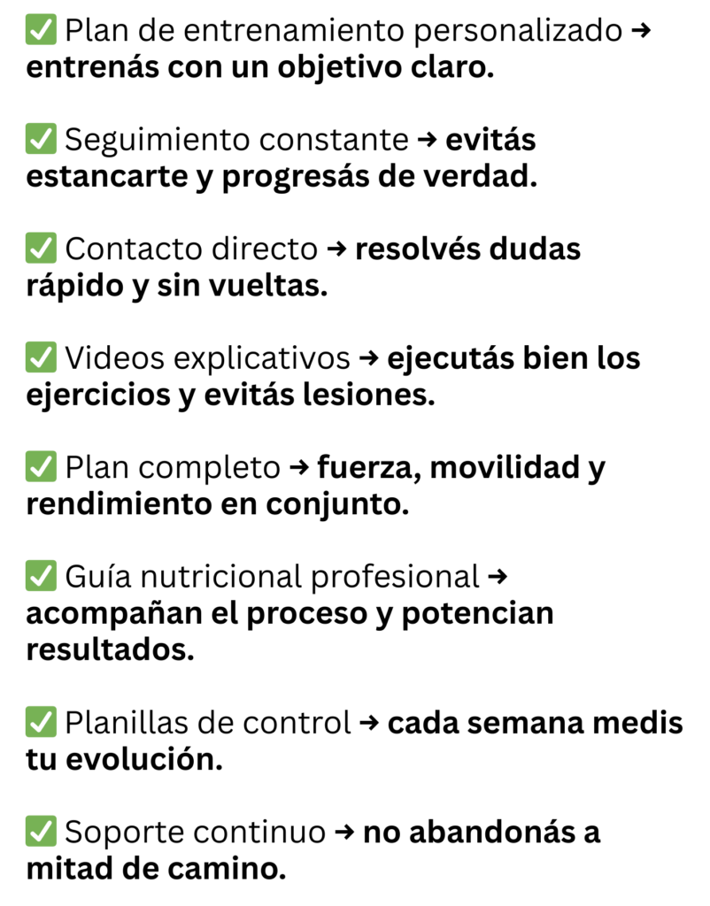 ✔ Tenés una rutina clara, adaptable a tu gimnasio y a tus tiempos.